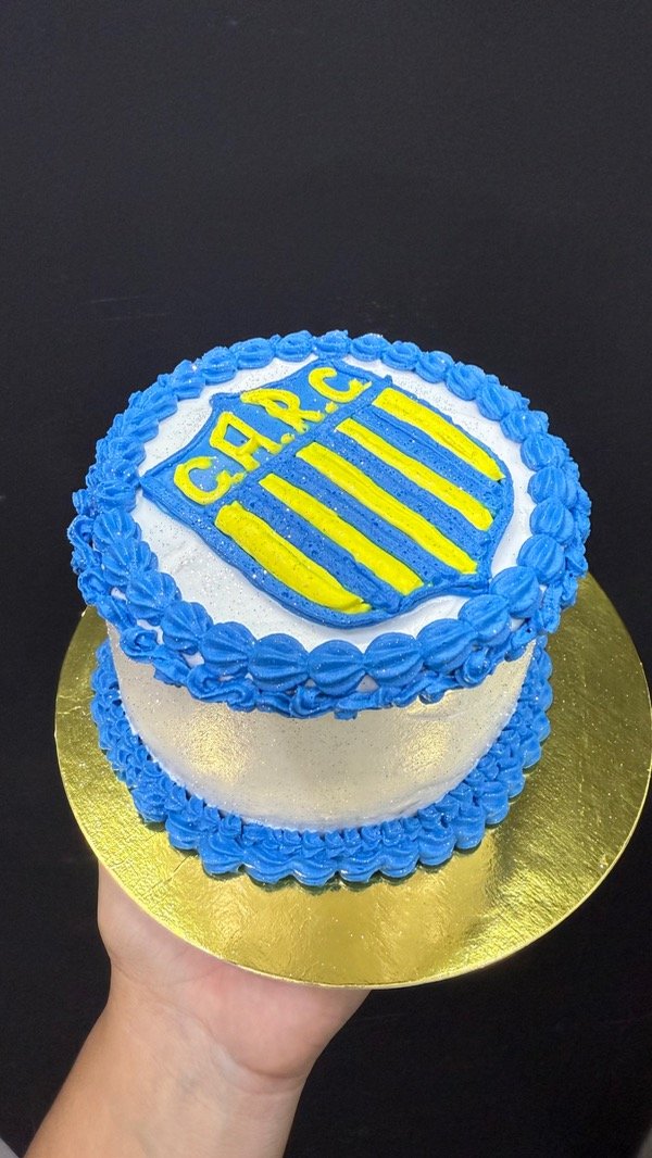 - Minicake rellena de dulce de leche con merengues y chips de chocolate.
